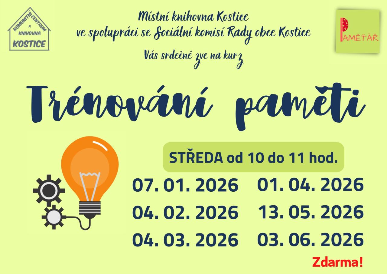 Místní knihovna Kostice pořádá trénování paměti. Využijte této příležitosti zdarma a zlepšete svou paměť s námi!